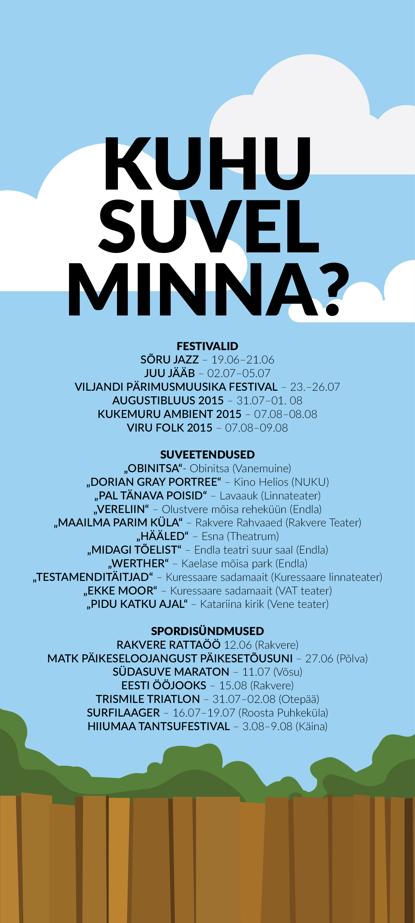 Teatavasti on suvi täis erinevaid „tuuritavaid-tiirutavaid“ artiste, kes vuhisevad mööda Eestit ringi ja pakuvad rahvale toredaid kontserte. Sel suvel tiiruta aga ise mööda Eestit ringi – nii näed kauneid paiku ja koged oluliselt rohkem kultuuri. Boonuseks on vahva seltskond ja õnne korral hea ilm.
